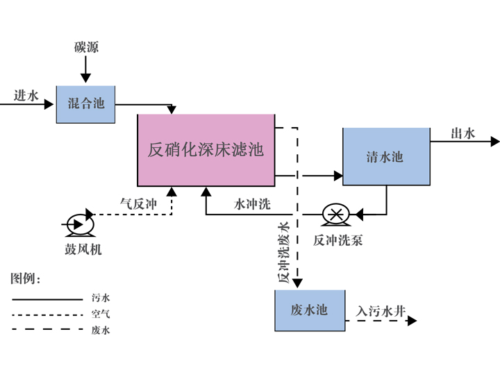 運(yùn)行模式在外加碳源情況下,則為具有反硝化功能的深床反硝化濾池,可以去除 TN、SS 和 TP。取消外加碳源情況下,則為深床濾池,可以同時(shí)去除SS和TP。