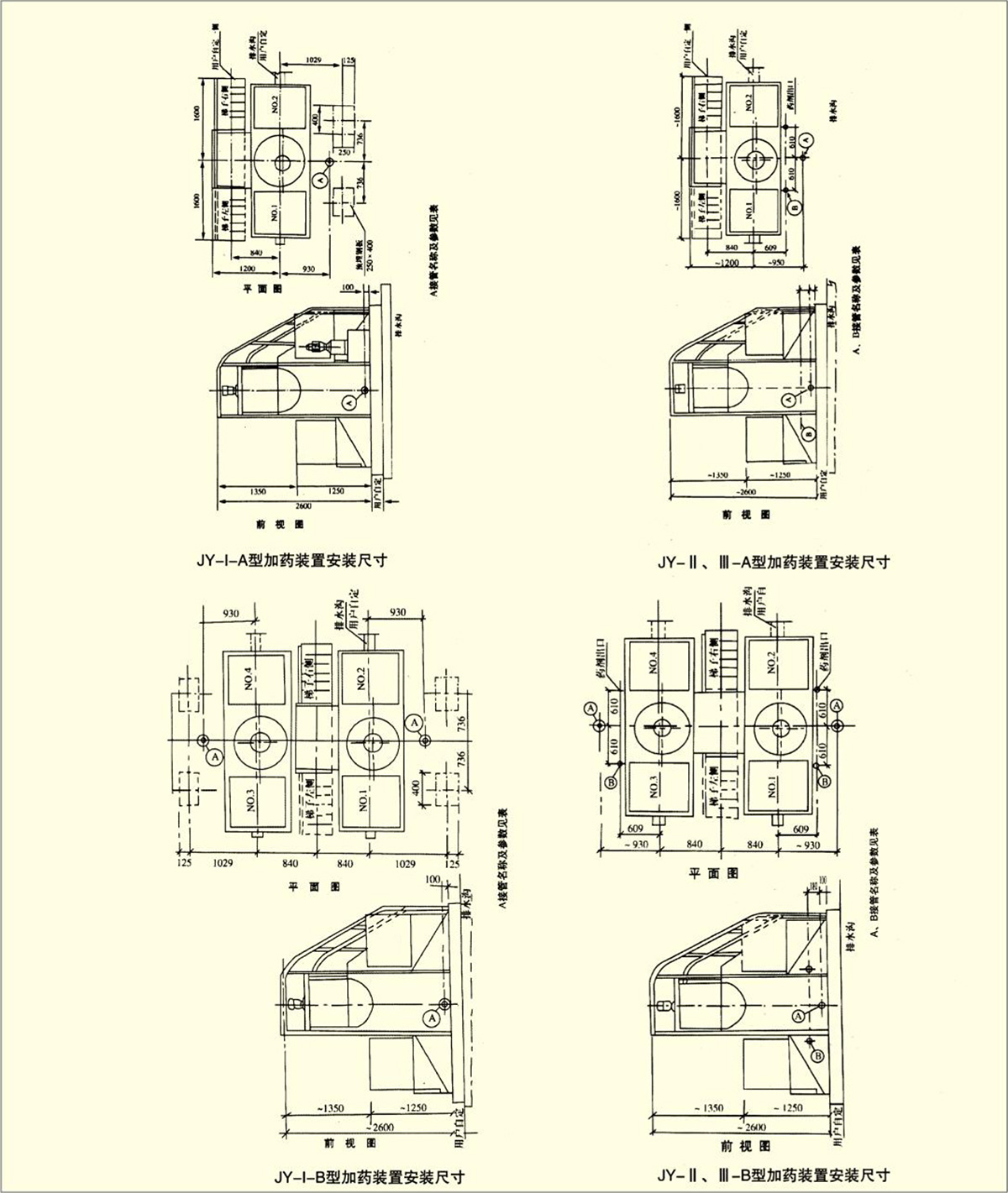 JY型加藥裝置配有一個玻璃鋼材質的藥劑溶解槽,并配有一套電動攪拌機,兩個藥劑溶液箱,一套投藥裝置及配管、鋼制平臺梯子等原件組成一個整體。